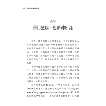三、作者區分了「情境性恩賜觀」(基督徒身上有所有的恩賜,隨時可依當下情境運用所需的恩賜)和「本質性恩賜觀」(每個基督徒有特別強的恩賜,且一生不變,而不具有其他的一些恩賜),並認為後者較合乎實情,我個人也認同作者的觀點。因此,基督徒應找出上帝所賜予的是哪些恩賜,且一生好好的運用這些恩賜服事神、服事人。