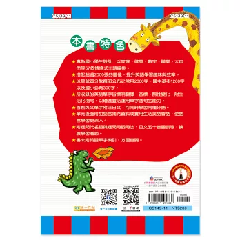 我們除了對字意的理解之外,更要對詞句組合之架構深入了解,才能以英語為溝通工具,傳達語言之正確訊息。世一文化有鑑於此,特為眾多語言學習的莘莘學子依主題方式編排,並佐以能符合溝通情境之生活會話,讓使用者不僅學習單字,並進而了解語法結構、架構溝通能力(communicative competence)。而編排方式之主題及字母順序交叉查詢方式,便易發展與記憶單字之累積量,而本書所涵蓋之內容廣泛所囊括之主題皆符合教育部公布之英語教學主題式之教學內容。