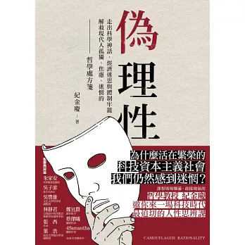在《偽理性》中,他以深厚的哲學功力為底,交織史學、社會學、經濟學、藝術等知識,點出造成現代人自我迷失的根源,就在於把「計算性思維」視為理性的唯一內涵,而且這種變質的理性還經常偽裝成能解決我們生命困惑的唯一解藥,使我們忘了人還有追求意義的深層需求。透過哲學反思,我們應當重新探索理性的多重樣貌,找回更有人味、也更豐盈的人生。