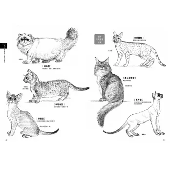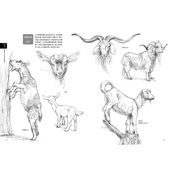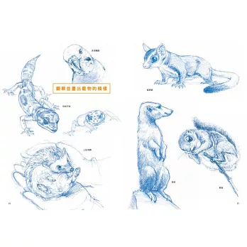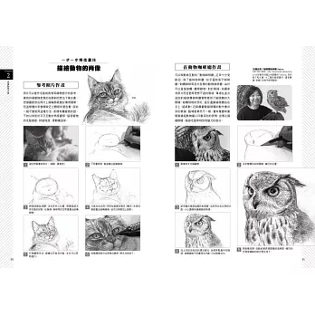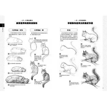 ◎收錄大量的素描範例,除了常見的貓狗之外,還有各式各樣的野生動物,看完本書就像逛完一座動物園!