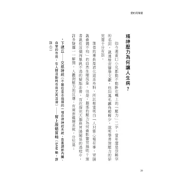 現代人的壓力無所不在而身受其害,以至於迷惘、煩惱、憂鬱、罹患現代醫學都束手無策的難解疾病……。那麼,找到解除人體內感受壓力的開關,就可以將疾病隔絕於外。