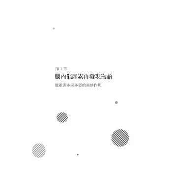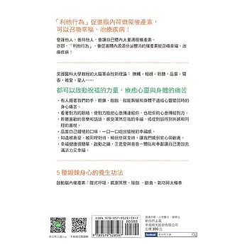 作者除了分享這項醫學上的重大發現,也明確指出了啟動腦內催產素分泌的鑰匙,就在我們日常生活裡的一舉一動之中,歸納為兩大方向的刺激(感官刺激與心理刺激),以及五種自我保健法,最能有效且催生腦內催產素。
