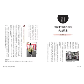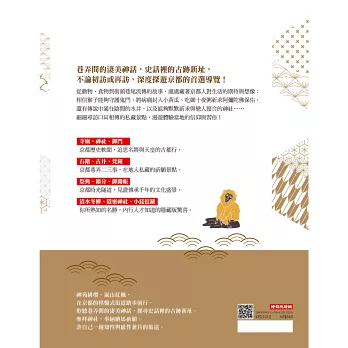然而,探入京都,「私藏」的錦囊不可無,必然要有大數據的準備,將京都的歷史文化、宗教典故、藝術建築與神話故事一一收納閱讀,才能懂得「裡京都」的奧妙,然後在一步一腳印的巡禮中,每一剎那都能與京都的美好相遇。