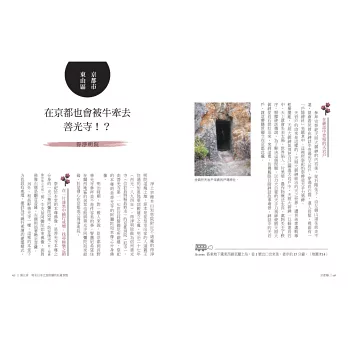 在地專家帶路,走進京都時光隧道,拜訪寺廟、神社與史蹟……等隱藏版名勝,探索深奧迷人的京文化,無論初次造訪或再次體驗,都將回味無窮。