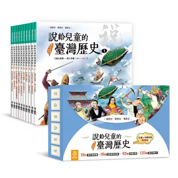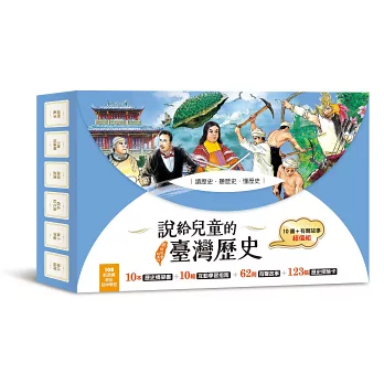 本套書以淺顯易懂的圖文介紹,搭配翔實的史料,帶領孩子走進歷史舞台,從梅花鹿遍佈的遠古臺灣,到政經繁榮的新世紀,藉鄭成功、劉銘傳、馬偕醫生等人物,以及中法戰爭、霧社事件、二二八等事件,刻劃臺灣的故事。