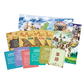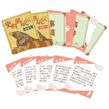 快!跟著鼠王摩戈,進入全國地底最長的「臺灣史道」探險!這套歷史探險卡一共123張,包含5張年代隧道卡、3張問題卡、75張碎片拼圖卡、36張角色卡、1張地鼠卡、3張空白角色卡。悅讀學堂執行長葛琦霞老師精心設計9種玩法,每種遊戲的人數不同,需要的探險卡也不一樣,但都會讓大家對臺灣歷史更了解、更熟悉!