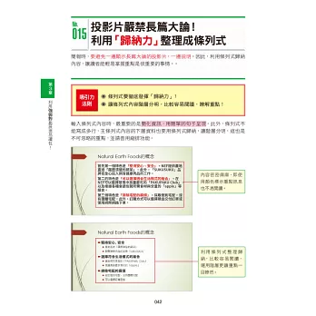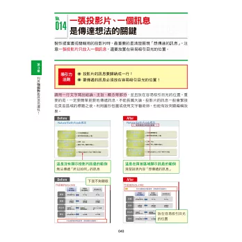 .每個單元以一~三頁解說讓簡報產生戲劇性變化的重點。