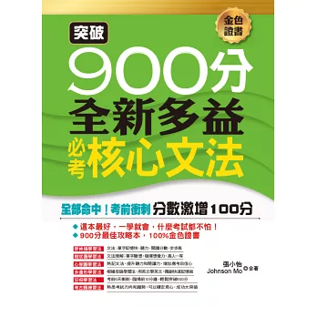 全新多益應考教戰策略,迅速掌握主考官的出題方向,聽力、閱讀,金色證書攻略本,花最少時間,得最高分數。