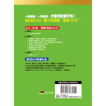 1.利用SOP準備多益,練文法、單字,強化聽力、閱讀,突破最高分。