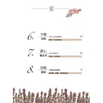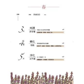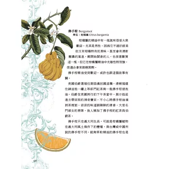 「我對芳香療法認真很大一部分是因為編輯工作的關係,因此,一開始就像做學問一樣研究,從知識到體驗,對一款一款精油、任何一種芳香療法,好似編輯一本書的工序,每個步驟都實踐一次,並完成它。」--摘自前言