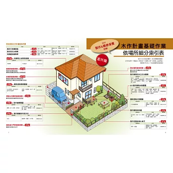 書中從可以享受悠閒家居生活的花園桌椅組到室內讓你能夠放鬆心情的和室裝潢,以及可以解決廚房雜物的小型收納櫃等等,讓你的居家生活更加豐富多元。此外,更貼心的提供了多種家中修繕的技巧以及小道具,讓你的居家生活更加安全、不再問體百出。
