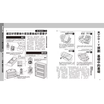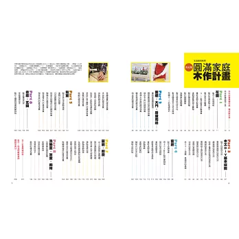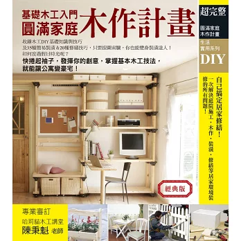 「圓滿家庭木作計畫」收錄木工DIY基礎知識與技巧,及35種簡易裝潢與20種修繕技巧,只要按圖索驥,你也能變身家中木工裝潢達人。