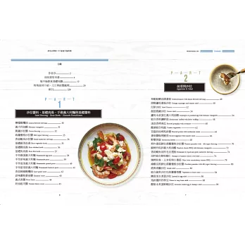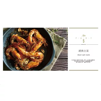 PART5 經典主食:肉類與海鮮也是地中海飲食不可或缺的主要飲食之一,尤其是海鮮料理,因為脂肪與熱量都相對低,所以在這裡非常推薦經常食用,加上台灣盛產各種海鮮,因此本單元也將海鮮料理更豐富多元的呈現,讓大家在選擇上,都更隨心上手。