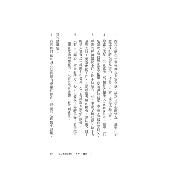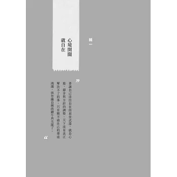 「要讓自己活岀自在的最佳武器,就是心態、腳步與方針的調整。天下沒有真正解決不了的事,只有饒不過自己的那道鴻溝,與作繭自縛的鑽牛角尖罷了。」──黃越綏