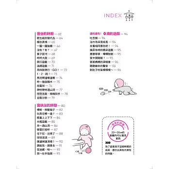 雖說如此,但是把大人的快樂強加在寶寶身上的話,終究還是跟對寶寶置之不理沒兩樣。寶寶的認知能力、身體能力、心理機能,與大人相當不同。請充分了解這個特性,試著享受與寶寶共處的時光。