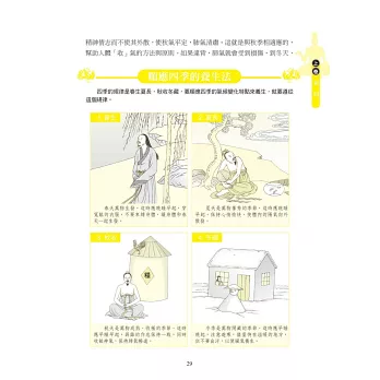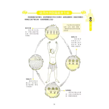 全書收錄近千幅精美手繪插圖、圖解流程和表格,全都為作者自創,獨家呈現。能夠明白清晰地呈現出《黃帝內經》和二十四節氣養生、四季調理、五行經絡等生活實踐特點,並具體講解各季節的養生特效穴位與功法,讓讀者能夠快速查詢對照,自學自療,可做為自我檢測體質的重要參考依據。