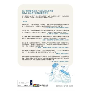在本書中,本身有過動特質,學生從6歲到30歲都有的光頭老師,針對父母師長最困擾的情商與品格力教養,傾囊相授他從理論與實務中淬煉出來的教養心法,讓父母和師長能與孩子輕鬆互動,透過陪伴與引導讓每個孩子擁有高情商和好品格,不僅能和自己、和同儕和平共存,也能不論外在環境如何,都優游自在。