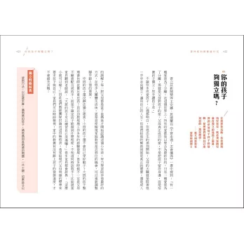 翻閱此書,有一種處處驚心之感。家裡的兩個兒子已經漸漸進入青春期,在學校與生活上難免出現一些挑戰,看著翩翩寫的此書,讓我不時驚訝連連,原來現在出現的各種問題,早在幼童時期就萌芽了。這是一本值得所有家長共同分享的預言書……喔,不!是教養書。只能怨嘆這本書出現太晚,我們相遇太遲!——宋雅雯(非凡媽),親子飲食部落客