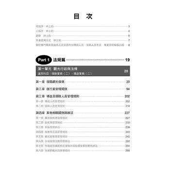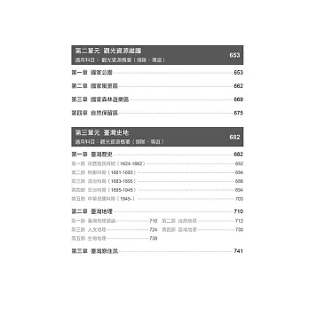 本書將領隊導遊人員的實務(一)、實務(二)、觀光資源概要等科目中的十多種命題範圍分成「法規篇」和「常識篇」,分門別類,標記清楚,以不同方式雙向攻破,讓您有條理、有系統地輕鬆吸收考照精華,考生最易上手!
