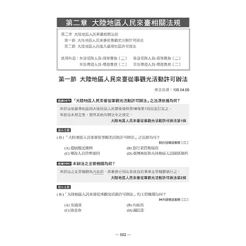 導遊實務(二):觀光行政與法規、臺灣地區與大陸地區人民關係條例、香港澳門關係條例、兩岸現況認識