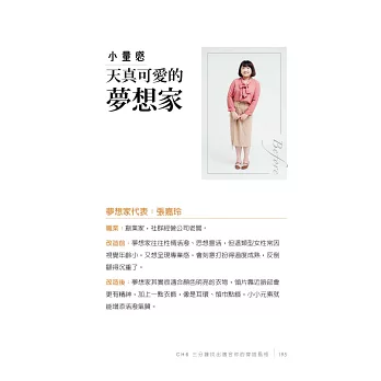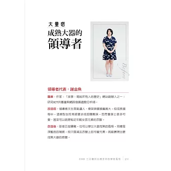 有人找回身體認同──他人對你外在的評判,形成內心的傷,導致我們對自己身體認識不清,讓你視穿搭為畏途,衣櫥永遠只有某種樣式與顏色的衣服……理解「美」不只有單一標準、不只關注身體局部,更懂綜觀全局,開始享受穿搭過程;