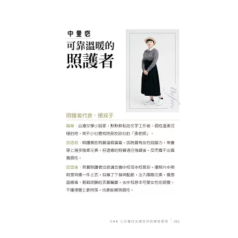 ‧對自我風格認識不清?你是領導者、照護者,還是夢想家?首創「角色三原型」自我檢測,透過科學數據化分析,搭配性格傾向提問,就能找到屬於自己的人物設定與穿搭風格。