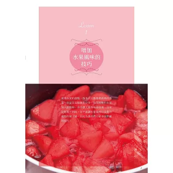 使用水果的甜點,既多汁又散發著清爽的香氣。但是若直接將水分多、沒那麼酸的水果加入甜點時,容易讓人覺得味道淡薄,缺乏記憶點。第一章將為您介紹可以運用哪些技巧,恰到好處地增添水果風味又營造出豐富層次感。