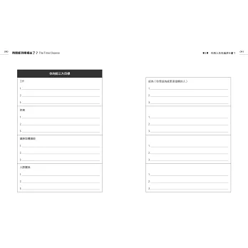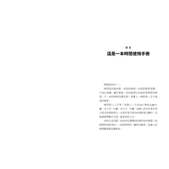 這是一本實用的時間使用手冊,包含大量的圖表工具,以及提升效能的訣竅與方法,你將學會: