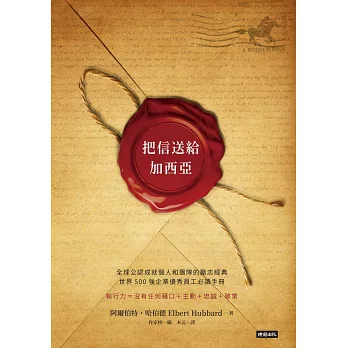親愛的讀者,擺在你面前的《把信送給加西亞》不是寓言故事,是美國歷史上每個字都發著光的真實事件,冊頁間隱藏著一切問題的答案。所以,如果國王或總統選擇你送信給加西亞,你只需立刻、馬上出發,去送信!