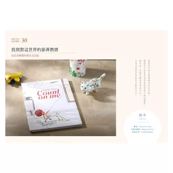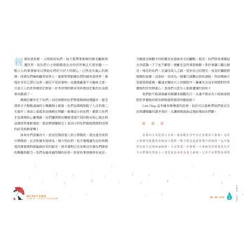 當然,也希望爸爸媽媽們能從書中找尋可與自己孩子分享的主題篇章;每一位展書閱讀的大人們,可以從書中介紹的三十本繪本,或是我撰寫的文字中,得到提醒、啟發和美好的教養靈感。
