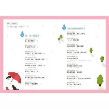 我把我想對親愛的兩個孩子訴說的千言萬語,寫成了這本書。我的兩個孩子已來到青少年階段,這階段的孩子不愛聽大人叨念、說教,可是我又有好多想法與感受想與他們分享,於是決定換個方式說──我想透過說故事的方式,與孩子聊聊我的所思所感。