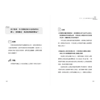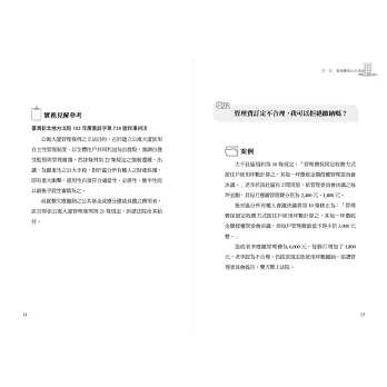 此外,由於一般人遇到法律糾紛,又無法私下與對方達成協議,而必須透過調解、上法院才能解決問題時,往往會不知所措,不知道程序如何進行、書狀如何撰寫、所陳述的內容可能會發生什麼後果等等,尤其是進行民事訴訟程序時,對於極具專業性的「訴之聲明」、「請求權基礎」等事項往往不知如何主張,因此,本書在每個案例最後,都會提出與該案例相關的聲明範例或是相關的實務見解供大家參考。而本書附錄也一併說明提起民事訴訟、書狀撰寫的相關流程,讓您在實務運用上更加清楚。