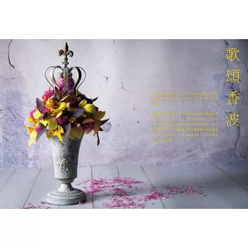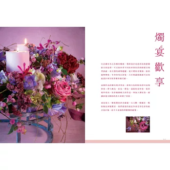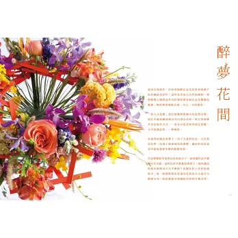 色彩還有著它的季節性,春夏秋冬,各有不同的主色調!花卉藝術的特質是,如果決定使用季節性花卉再加上合乎邏輯的生長狀態,我們很快就會意識到春季、夏季、秋季或冬季,因花卉的不同而有的季節感。我在本書中介紹的花藝設計,都反映了當下時令,花朵的生命雖短暫,卻因色彩造型等因素而可以留下美的記憶。
