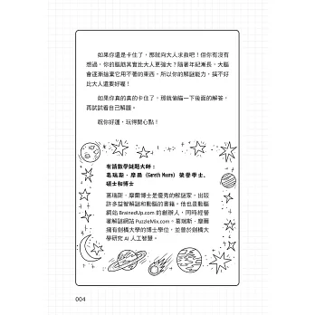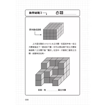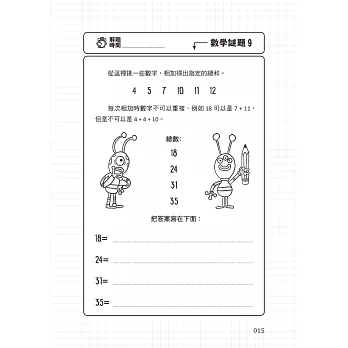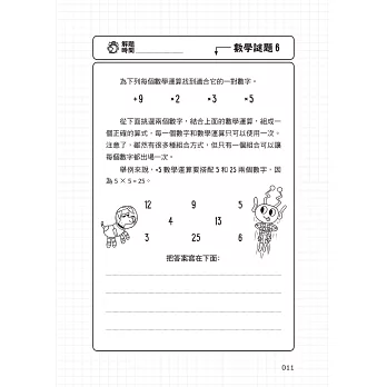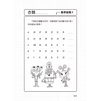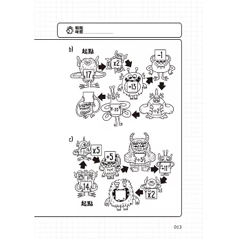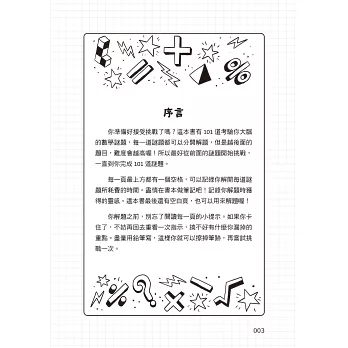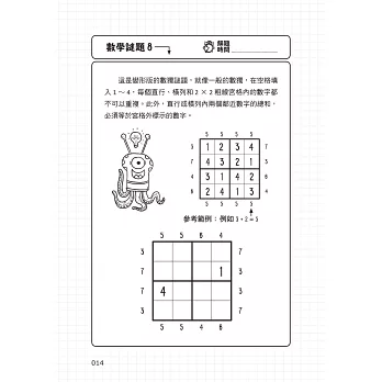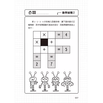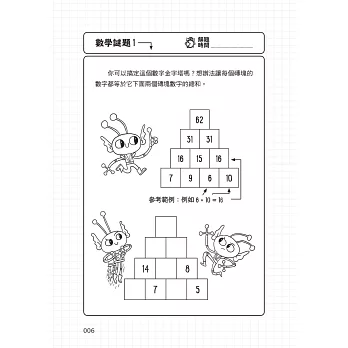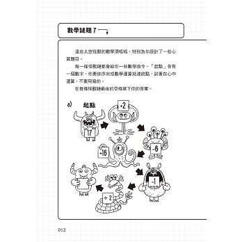數學宇宙浩瀚無垠,一起跟著書中的太空怪獸們,把數學變遊戲,挑戰各種類型的益智題目吧!