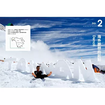 起自2012年北美第一高峰Denali,至2019年世界傳奇K2峰,