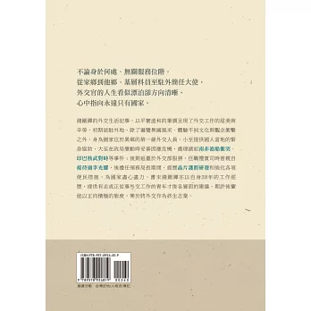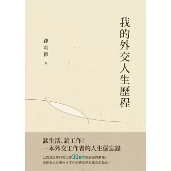 本書就從事外交工作將近四十年(一九七○―二○○七),在外交部部內單位、派駐駐外館處,期間所曾經歷事情,有趣見聞,片片斷斷,記載下來,內容以不涉及工作機密,外交、政治敏感話題為原則。書中感言一章,則為本書主軸,就多年從事外交工作切身之體認,感想與心得,敘發所感,期以此書對有志從事外交工作的青年朋友,或新進外交部工作的生力軍,有所啟迪、激勵作用,此乃筆者書寫本書主要動機與目的。