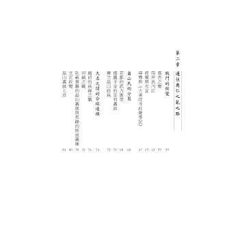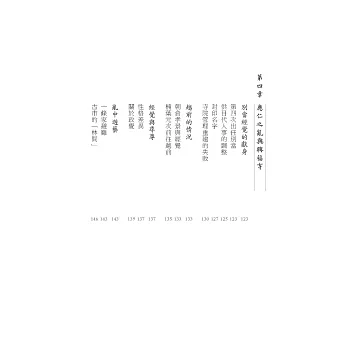 以上兩項重要事件,引爆、扭轉了應仁之亂的情勢。然而這場戰爭持續超過十年,其中必然受到包括足輕的出現、全新攻城武器登場、戰爭方法改變在內多項條件影響。過去由於出場人物太多、主支線盤根錯節而令人卻步的應仁之亂,在本書作者清晰的輪廓梳理加以淺顯易懂的文字解說,將有助所有對日本中世史感興趣的朋友一探究竟,對不只這場戰爭、包括這個迷人的時代,建立更多認識。