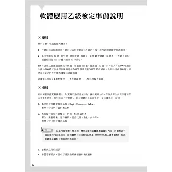 ●關鍵數據資料:關鍵數據資料乃作者研究精華,乙軟檢定考試,錯一個就是扣50分,如何在處理完所有題目之後,自行檢視作答成果,您一定不能忽略關鍵數據資料。