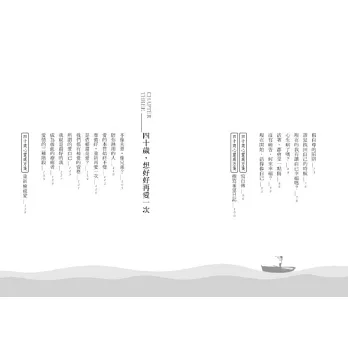 年屆四十,若感到迷路,不知如何往前,就停下來面對吧!並不是只有風平浪靜,才是幸福安穩;而是即使遇到大風大浪,也要能相信自己。