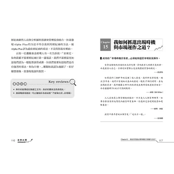 除了聚焦在一流基金經理人在判斷buy-sell時的關鍵思維,本書更將有系統地闡述安東尼波頓在管理基金時採用的高勝率作法,包括:精準選股、投資組合、風險控管、進出場時機等無價經驗,你將學會靠著「不常輸而贏」的贏家奧義。