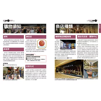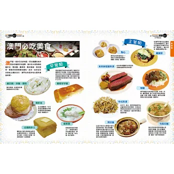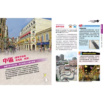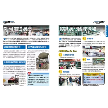 初步了解澳門、各種行前準備功課、提醒你需申請的證件、澳門機場出入境步驟、從大陸或香港如何出入境澳門、在地交通移動方法、如何緊急求助……等。所有你在澳門旅行可能遇到的困惑或問題,全都預先設想周到,並給予適當的指示和解答。讓你到澳門旅行,能自在地享受美好旅程。