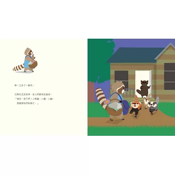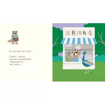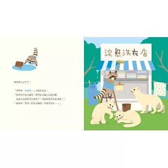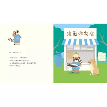 這次由浣熊先生幫忙動物朋友們洗滌各式各樣的衣物,