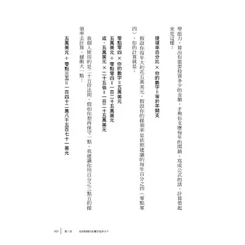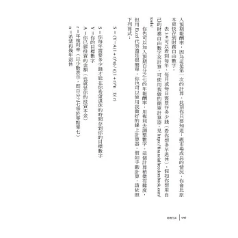 書中還有許多實用的工具,例如「物品的未來價值計算器」、「財務自由計算器」等,協助我們思考是否需要買一杯咖啡,計算出我們要多少錢才能退休。