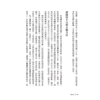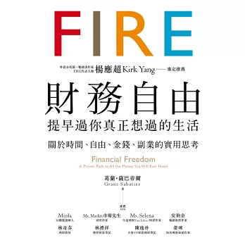 本書是一幅路徑圖,通往令人嚮往的人生方向,加入全球性的FIRE潮流,從此再也不必為錢工作,開始真正從事自己有興趣的志業。