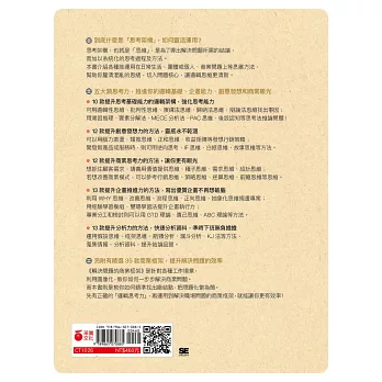本書介紹各種能運用在日常生活、團體或個人、商業問題上等思維方法,
