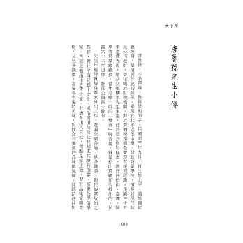 七○年代初,臺北文壇突然出了一位新進的老作家。所謂新進,過去從沒聽過他的名號。至於老,他操筆為文時,已經花甲開外了,他就是唐魯孫。民國六十一年《聯副》發表了一篇充滿「京味兒」的〈吃在北京〉,不僅引起老北京的蓴鱸之思,海內外一時傳誦。自此,唐魯孫不僅是位新進的老作家,又是一位多產的作家,從那時開始到他謝世的十餘年間,前後出版了十二冊談故鄉歲時風物,市廛風俗,飲食風尚,並兼談其他軼聞掌故的集子。