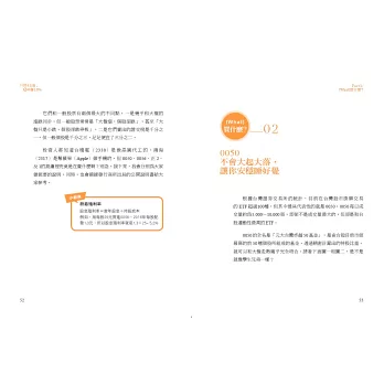 因應越來越多的指數型基金,本書也提供進階操作方式。當投資人對風險承擔能力提高,想發展更靈活的操作模式,就可以升級到反向、倍數型的 ETF。