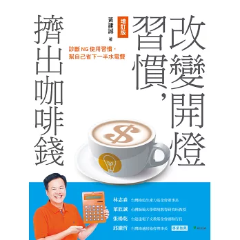 另外,本書特別加碼「企業、店家不可不知的省電祕訣」,幫老闆們精打細算每一塊錢,例如:非時間電價VS.時間電價方案建議;如何制定最適合的經常契約、非夏月契月、周六半尖峰契約、離峰契約;提供商家節電建議,像是餐飲業加裝空氣簾或自動門,可省電8000元……等,最後還無私分享居家、店家和社區省電案例,是一本適合每個人的DIY節能小百科。