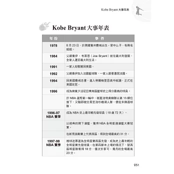 Kobe Bryant的個人傳奇 Kobe Bryant的成功特質 Kobe Bryant的勵志語錄 Kobe Bryant 的生涯紀錄檔案 經典賽事視頻 Kobe Bryant大事年表