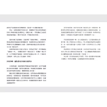 孕期的女人往往因為新生命,有更多的動力過得更健康一點,所以說,懷孕到產後是改變生活型態和飲食的最佳時機。均衡飲食健康生活不單純只是為了更美好的自己,更多一點是為了妳的孩子,在孕前、產前就把正確的飲食與運動的習慣「內化」,面對新生命、新生活的挑戰相信妳會更得心應手。從快樂「孕動」到產後「剷肉」,就讓專業婦產科醫師陪妳聰明吃、動起來,緩解孕期不適、養胎不養肉吧!